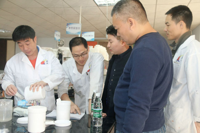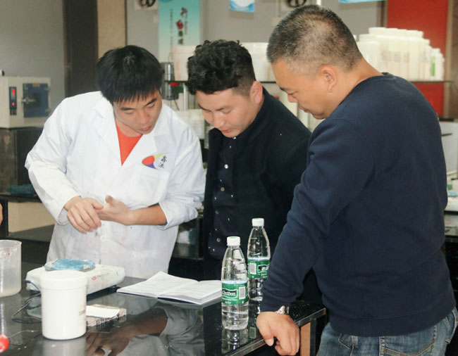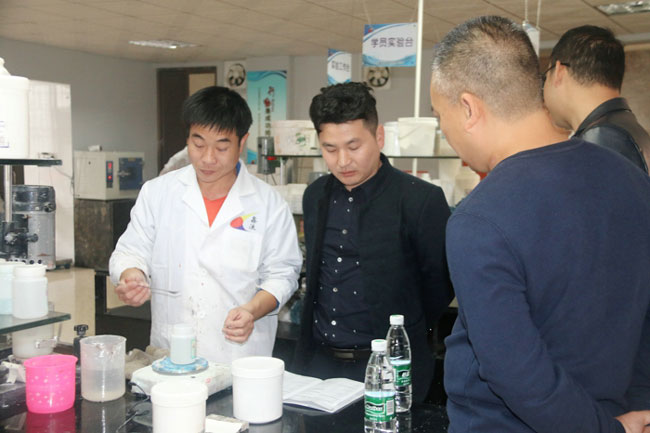 鑫浪出品的水包水原石對比樣板庫、多彩數(shù)據(jù)庫、色漿配方、免費技術培訓、工程師上門協(xié)助生產(chǎn)等配套服務,可以完美解決涂料企業(yè)所擔憂的水包水仿真度的問題。遼寧馨鴻涂建材李總、河北楊總慕名而來,并深入了解700多彩體系技術。李總在對廣州涂料展拿到的《水性建筑涂料技術手冊》表示高度認可,鑫浪也愿意與每一位客戶一起分享行業(yè)先進技術與旗艦產(chǎn)品,共同迎接水包水的大時代,期望和伙伴們一起齊頭并進互利雙贏。