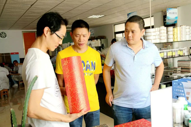熱烈歡迎鑫浪合作伙伴福建信邦環(huán)保制品董事長姜董、黃經(jīng)理、鄭經(jīng)理等一行人來鑫浪與陳總敘舊,并對700多彩R103體系水包砂的出色表現(xiàn)給予認可。水包砂涂料是一款集合了水包水涂料仿真度與真石漆質(zhì)感的結(jié)合產(chǎn)品,700體系水包砂質(zhì)感好、易造型、表現(xiàn)力強,耐候、抗老化性強??沽逊罎B,不變色、硬度高。
