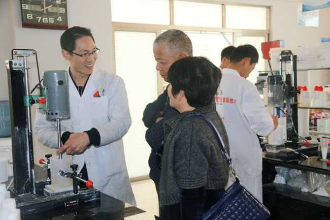 鑫浪700水包水多彩體系憑借配套完善、質(zhì)量穩(wěn)定、仿真度高等諸多顯而易見的優(yōu)勢(shì)獲得了廣大客服的青睞?!按蝻w的”遠(yuǎn)道而來(lái)的寧波蕙蘭涂料胡總、張總夫婦投身多彩行業(yè)4年有余,此次親眼見證了700的整體表現(xiàn)后非常滿意,且當(dāng)場(chǎng)下單愿與鑫浪達(dá)成合作關(guān)系,胡總不吝贊美:“700完美解決了之前我們所使用的上海某多彩體系存在的問(wèn)題,我們不用再擔(dān)心材料成本過(guò)高,產(chǎn)品附著力差和仿真度過(guò)低的問(wèn)題了。”