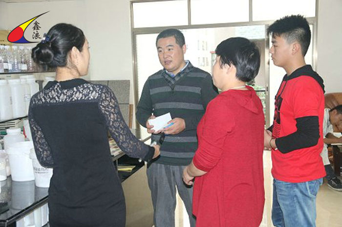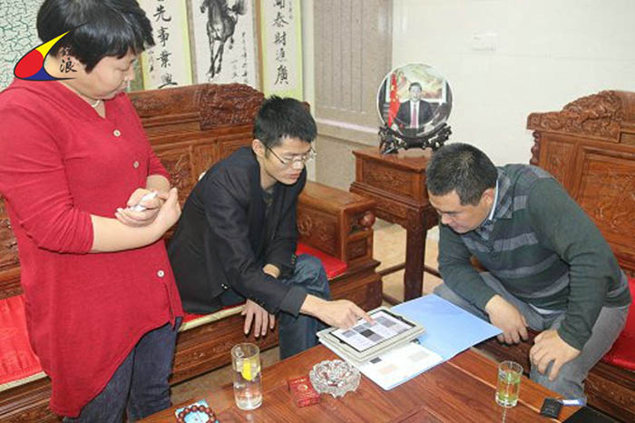 鑫浪700水包水多彩體系與800水性裂紋漆體系在業(yè)內(nèi)成為旗艦型產(chǎn)品,受此影響,宏揚(yáng)慧聰科技有限公司總經(jīng)理譚吉洪等一行人訪問(wèn)鑫浪,欲借助鑫浪深厚的技術(shù)實(shí)力,與宏揚(yáng)慧聰專業(yè)的制卡技術(shù)相結(jié)合,推出國(guó)內(nèi)首家專業(yè)水包水多彩色卡。