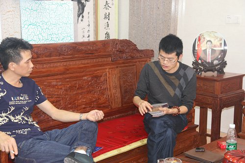 鑫浪精選市面上流行的21塊大理石,利用700水包水多彩體系進行高仿噴版,一套色卡即可解決眾多客戶對水包水多彩的仿板需求,并可隨身攜帶,對于施行項目工程的客戶來說極為方便。因此,前來鑫浪一睹色卡風采的客戶絡繹不絕,佛山南莊劉總、佛山大良林總、黃總也慕名而來參觀鑫浪之家,與陳細艷總經(jīng)理交流水包水多彩。