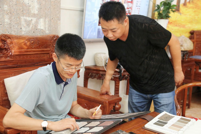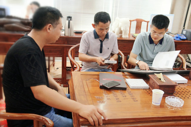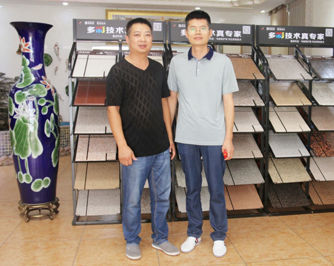 沒有一個業(yè)務(wù)員、僅通過口碑傳播就高速發(fā)展的河南五彩錦涂料,是當(dāng)?shù)厥准耀@得環(huán)評認(rèn)證的龍頭型涂料企業(yè)。此次五彩錦鄭總來到順德旨在交流與考察700水包水、水包砂技術(shù),鄭總在考察期間對鑫浪配套完善的700體系表示肯定,且對交與鑫浪工程師原石的水包砂仿版效果給予認(rèn)可,當(dāng)場下單多彩保護(hù)膠R101交聯(lián)劑、R103定型劑達(dá)成深度合作。