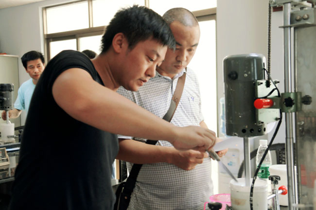 善學(xué)善思,善作善成。涂料企業(yè)僅僅擁有保護(hù)膠和生產(chǎn)多彩,并不代表是專業(yè)的多彩廠家,更無(wú)法在多彩大趨勢(shì)下快速發(fā)展。做好多彩的精髓就要掌握多彩“區(qū)域性、可變性、體驗(yàn)性、服務(wù)性”四大基本性質(zhì),鑫浪化工的高速發(fā)展就是在陳細(xì)艷總經(jīng)理的帶領(lǐng)下,貫徹四大基本性質(zhì)并專注于多彩技術(shù)的研發(fā)和應(yīng)用技術(shù)的推廣,從而在業(yè)內(nèi)獲得影響力。受此影響,廣東軒逸漆楊總、四川銘帝涂料唐工來(lái)鑫浪交流700水包水、水包砂技術(shù)。