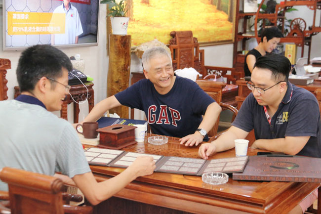 體驗性是水包水多彩之魂,而色卡是多彩體驗的窗口。色卡同時又是企業(yè)的一張名片,代表企業(yè)的實力、品位與文化。多彩可變性特別強,甲方客戶不一定從色卡選色,但精致高端的色卡能吸引客戶的眼球以及對企業(yè)實力的認(rèn)可。熱烈歡迎華隆麥總、楊工來鑫浪交流多彩色卡的應(yīng)用,同時感謝兩位老總對鑫浪2017版色卡庫的高度認(rèn)可。