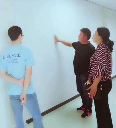 700多彩體系經(jīng)過(guò)8年的磨礪,成為中國(guó)建筑外墻涂料的重要成果,對(duì)推進(jìn)多彩行業(yè)標(biāo)準(zhǔn)化具有重大意義。歡迎新鄉(xiāng)邵總攜同愛(ài)人來(lái)鑫浪考察交流700多彩體系,為了更詳細(xì)的了解700體系,邵總和愛(ài)人親自動(dòng)手,體驗(yàn)了一下制作水包水的工藝流程,對(duì)我們的體系給予了高度認(rèn)可。