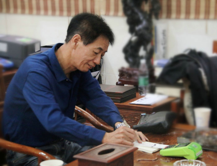 鑫浪2017版原石對比樣板的問世引業(yè)內(nèi)人士高度關(guān)注。從河南來訪順德的漆霸吳總、劉經(jīng)理等人就是其中之一,并當(dāng)場刷卡下單購買一套24色原石樣板(送數(shù)據(jù)庫與色漿配方)。漆霸服務(wù)于綠地等大型地產(chǎn)商,吳總用最專業(yè)、最前沿的涂料趨勢眼光給予鑫浪700之美予以高度認(rèn)可!