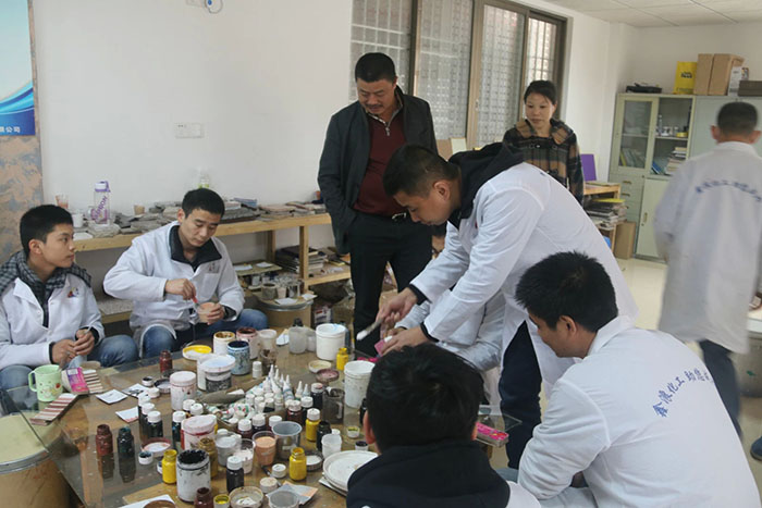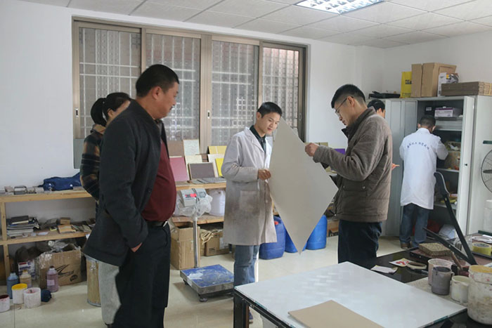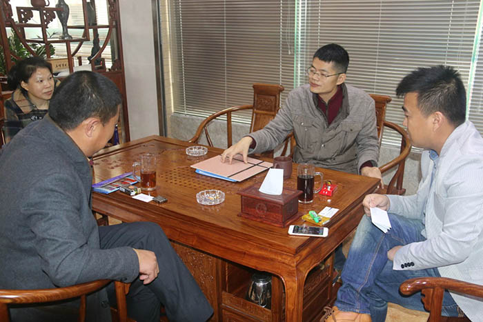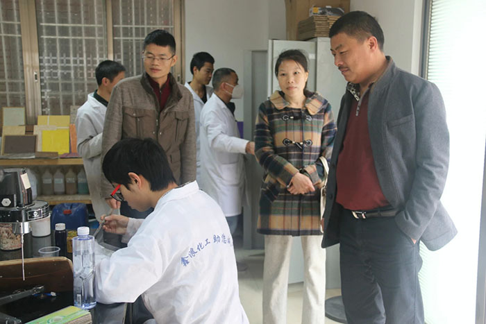 慕名而來的武漢雷恩節(jié)能環(huán)保材料有限公司總經(jīng)理楊勝濤等一行人,不遠千里只為深入了解鑫浪700水包水多彩體系,并期待與鑫浪化工總經(jīng)理陳細艷進一步交流水包水技術(shù)。