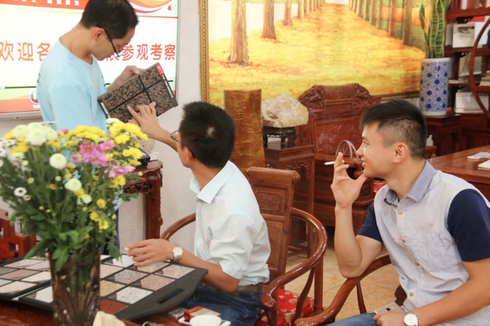 感謝江門中旗涂料劉總對鑫浪的認(rèn)可,稱每次到訪700體系都有質(zhì)的提升與飛躍。對于即將出展上海國際涂料展的2017版原石對比樣板也贊不絕口,并當(dāng)場下單購買一套。體驗(yàn)銷售是做好水包水市場的法門之一,鑫浪色卡樣板庫系統(tǒng)就是打造水包水體驗(yàn)的多彩窗口,助力客戶快速搶占多彩市場。