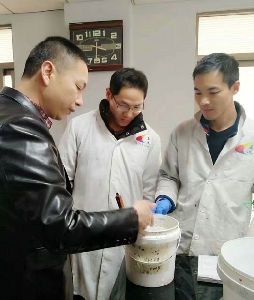 多彩涂料已進(jìn)入技術(shù)深水區(qū),全國(guó)各地多彩外墻工程遍地開(kāi)花。這時(shí)如何將多彩產(chǎn)品儲(chǔ)存穩(wěn)定并好施工、打版與出貨快,決定了多彩企業(yè)命運(yùn)的關(guān)鍵之一。近日,蘭州鄭總、深圳陳總來(lái)鑫浪交流700水包砂技術(shù),鄭總此行目的欲凝聚他們的專業(yè)生產(chǎn)與鑫浪的多彩專業(yè)服務(wù),共同在新起點(diǎn)上實(shí)現(xiàn)新突破。