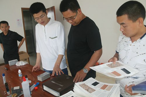 水漆以水代替有機(jī)溶劑為稀釋劑,不僅避免了油漆含有的有毒物質(zhì),在實(shí)現(xiàn)環(huán)保的同時(shí),還節(jié)約了石化資源。鑫浪化工自創(chuàng)辦以來一直致力于水包水多彩技術(shù)的研發(fā)與創(chuàng)新,力求研究出“高利潤、高附加值、仿石效果最佳”的水包水多彩(液態(tài)花崗巖)水漆,700水包水多彩體系最終應(yīng)運(yùn)而生,并在短時(shí)間內(nèi)獲得廣大客戶的普遍贊譽(yù)。四川閬中志航建筑涂料有限公司總經(jīng)理夏果等一行人也慕名來到順德,與鑫浪化工總經(jīng)理陳細(xì)艷交流水包水多彩技術(shù),希望一睹700水包水的風(fēng)采。