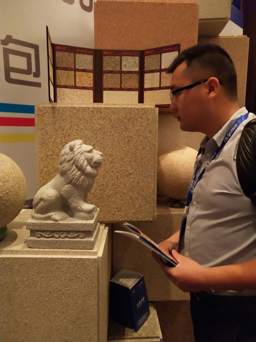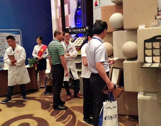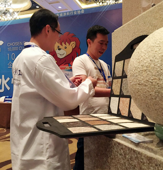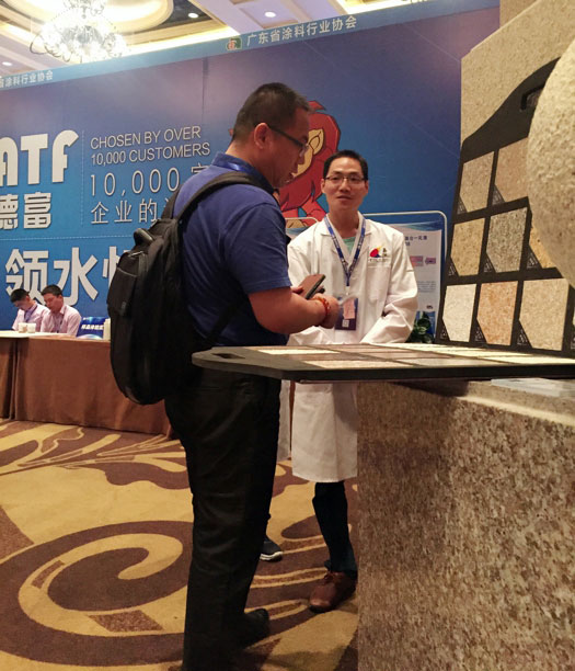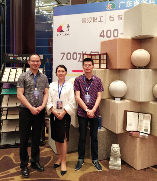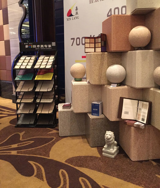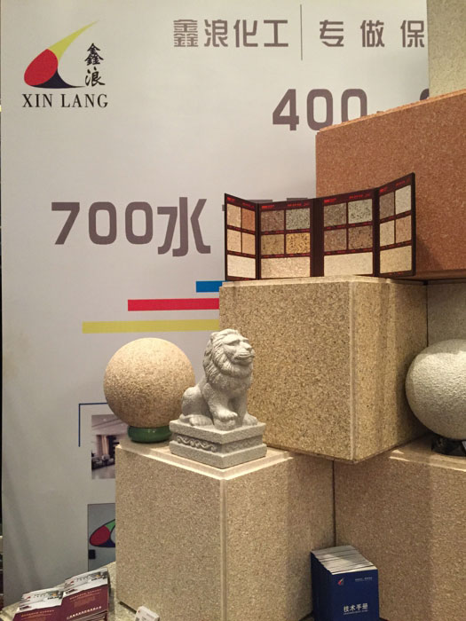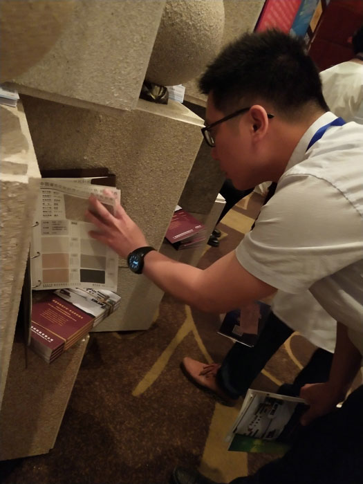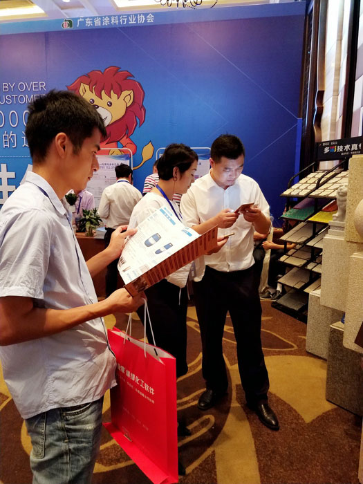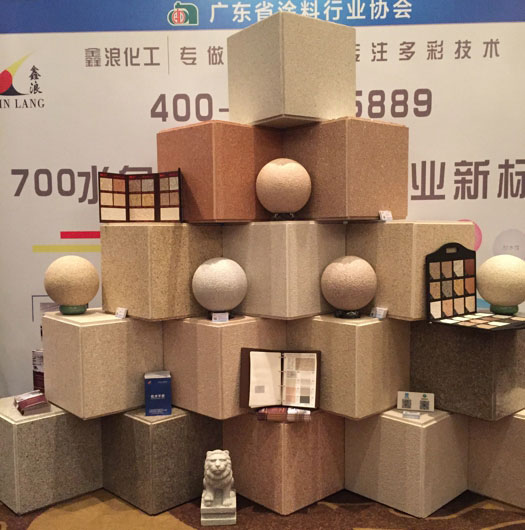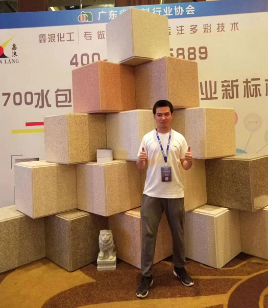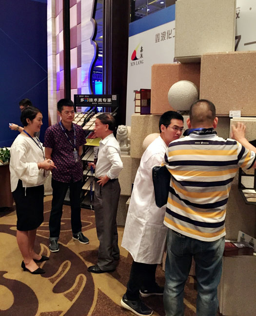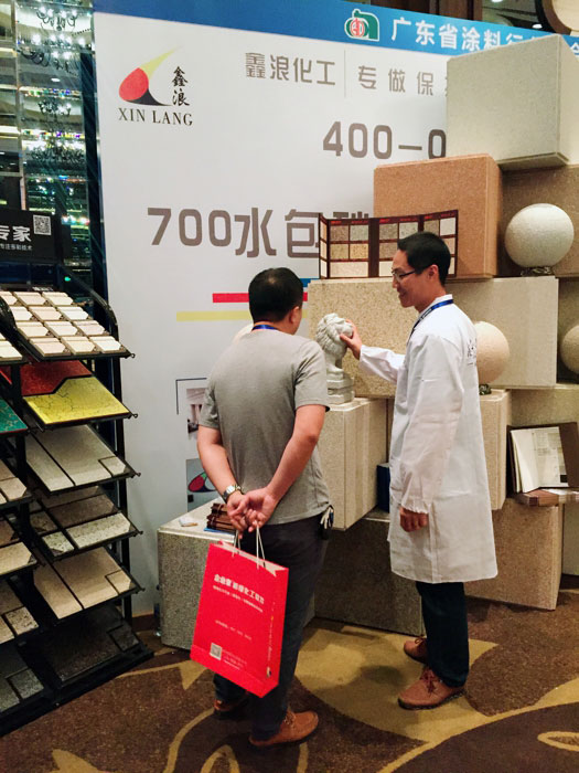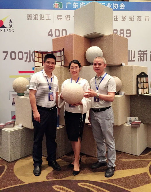 此次鑫浪展出的700水包砂樣板,以假亂真的仿石效果,讓酒店保安都誤以為我們工作人員搬運(yùn)的泡沫樣板是石頭,還主動詢問我們石頭太重,是否需要幫忙。這樣誤會的小插曲還很多,我們在感受此次與會人員的熱情的同時,鑫浪的仿石效果也得到了廣東涂協(xié)高層及參會單位的一致好評。