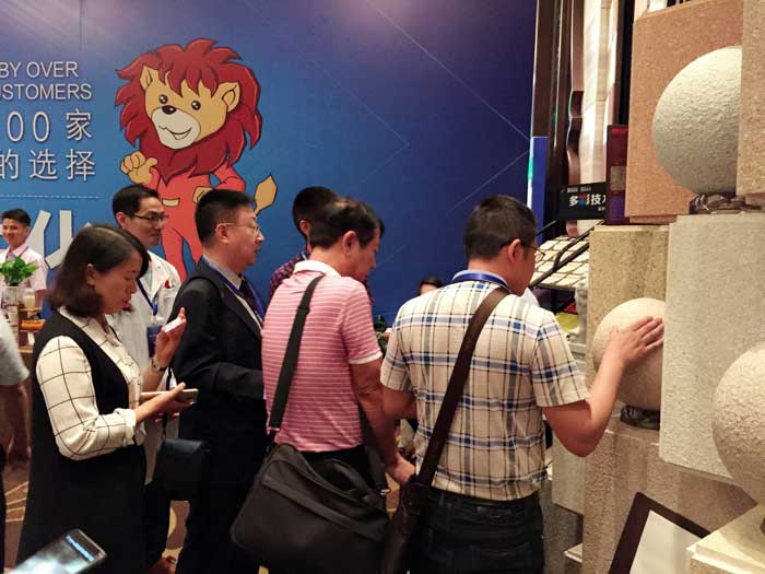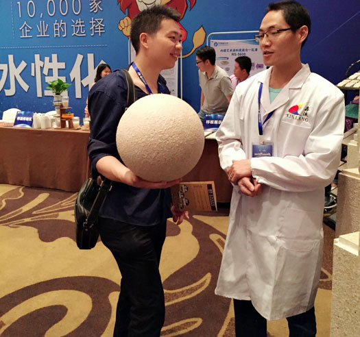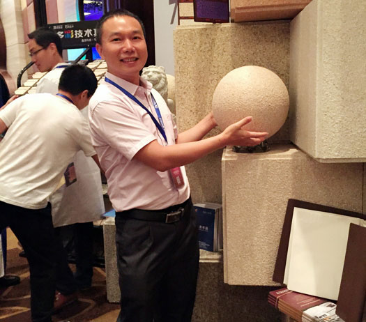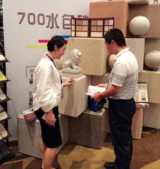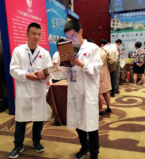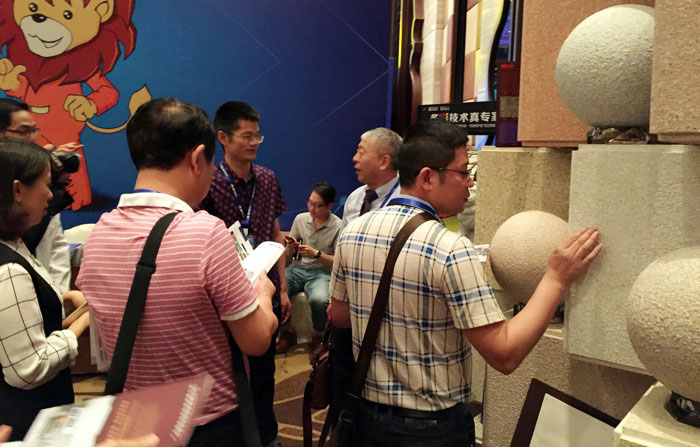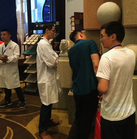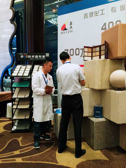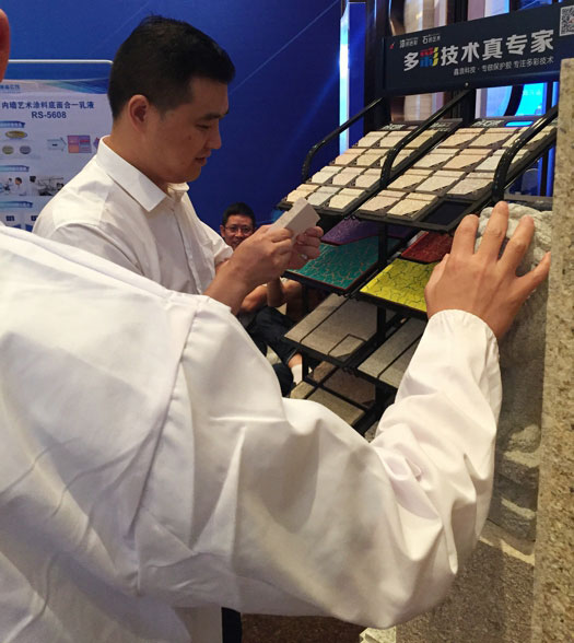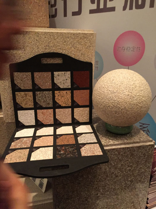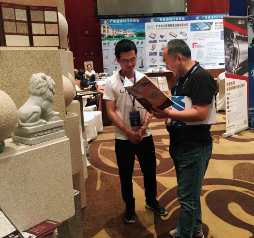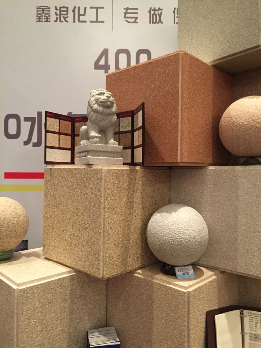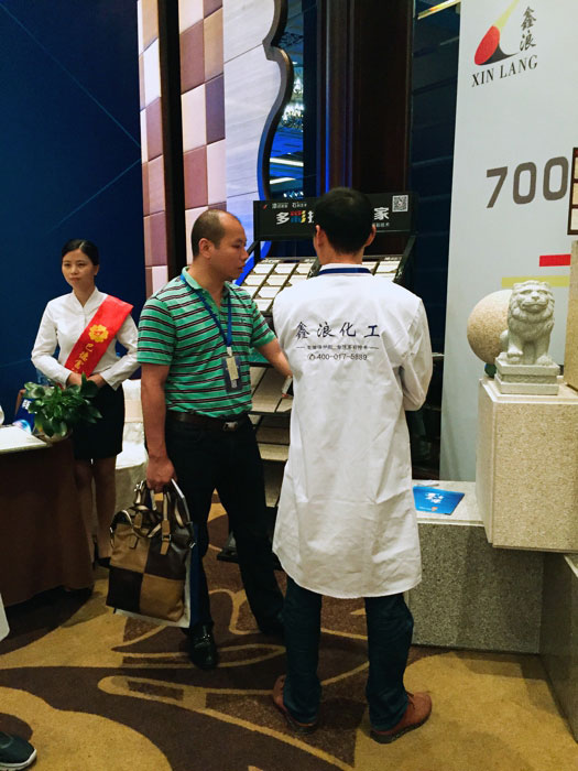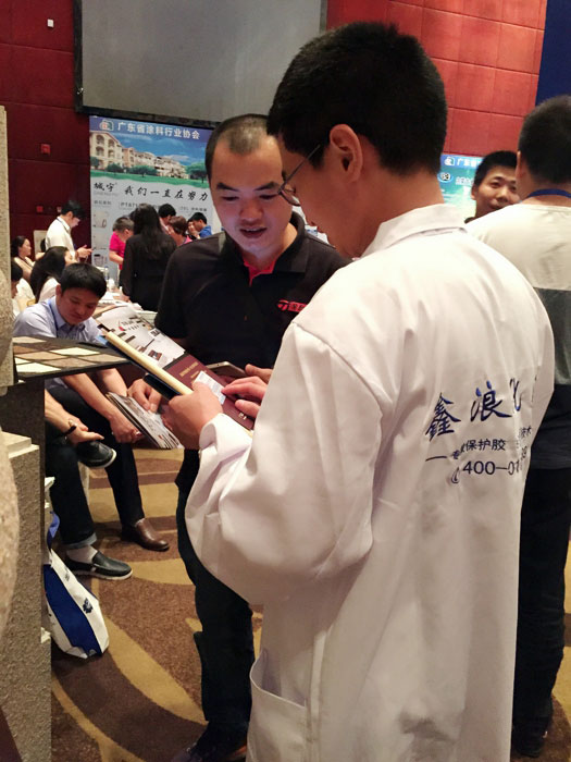此次鑫浪展出的700水包砂樣板,以假亂真的仿石效果,讓酒店保安都誤以為我們工作人員搬運(yùn)的泡沫樣板是石頭,還主動詢問我們石頭太重,是否需要幫忙。這樣誤會的小插曲還很多,我們在感受此次與會人員的熱情的同時,鑫浪的仿石效果也得到了廣東涂協(xié)高層及參會單位的一致好評。