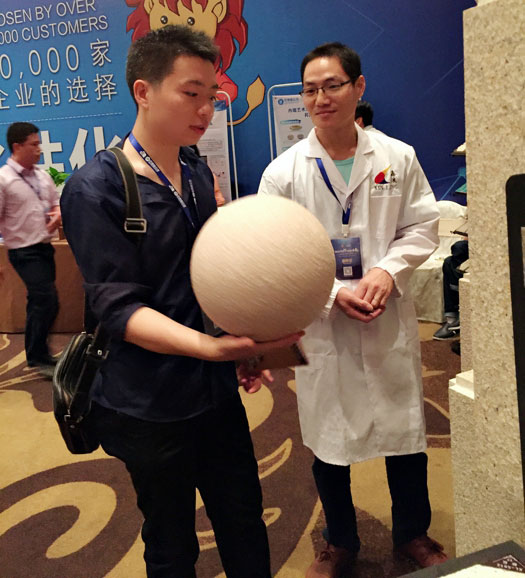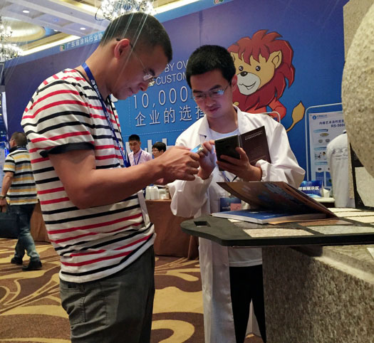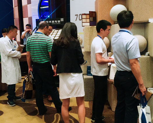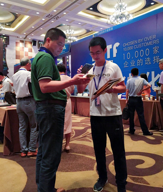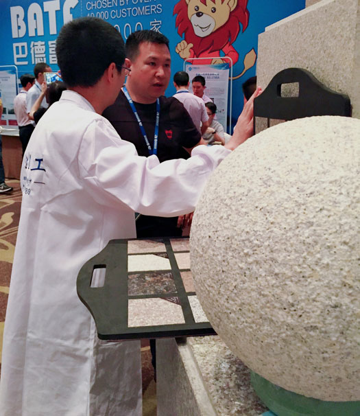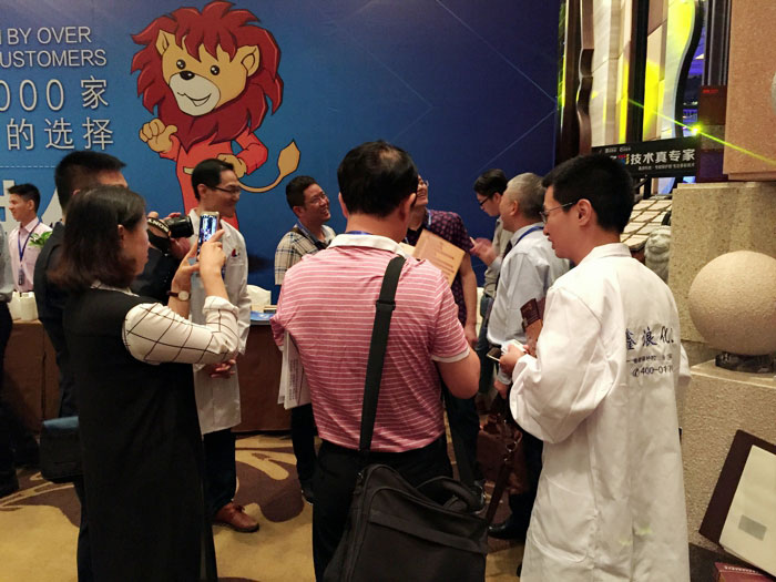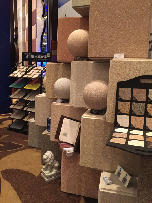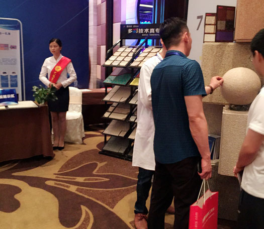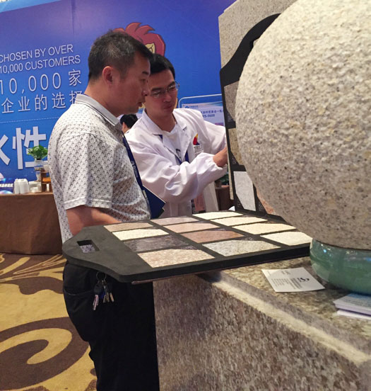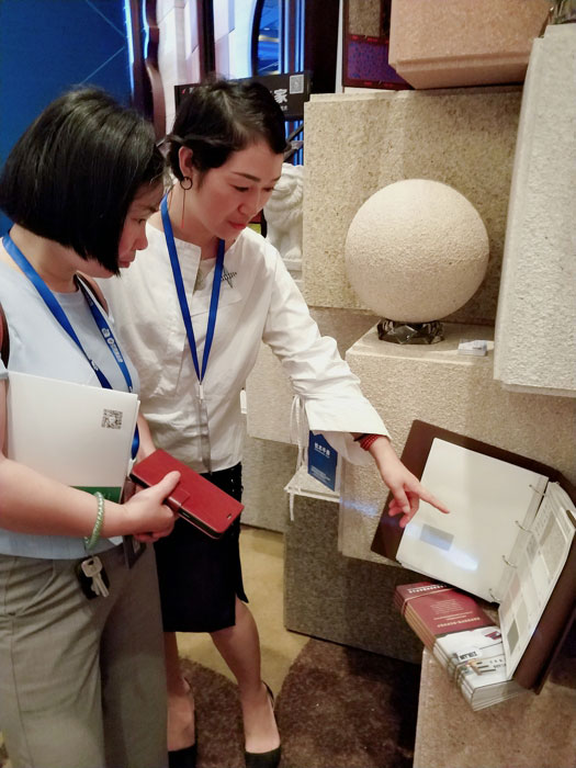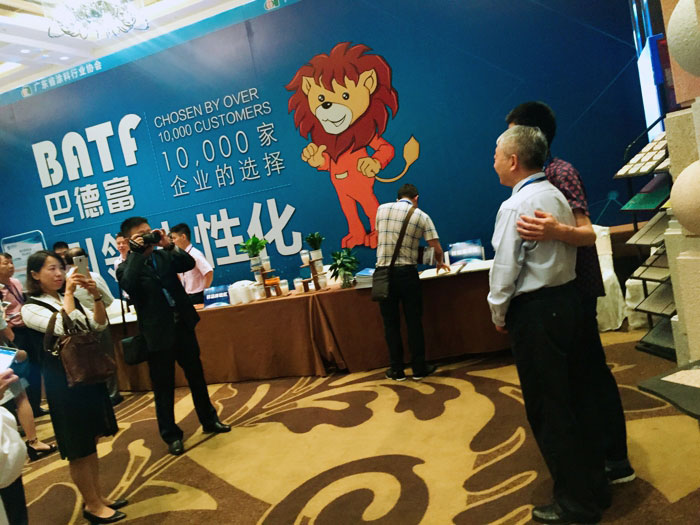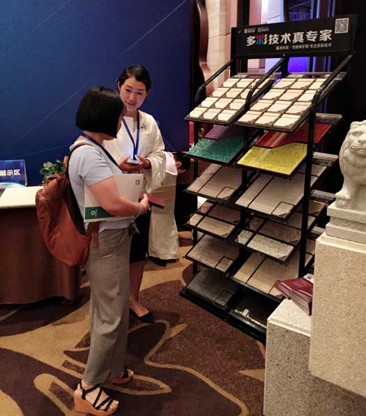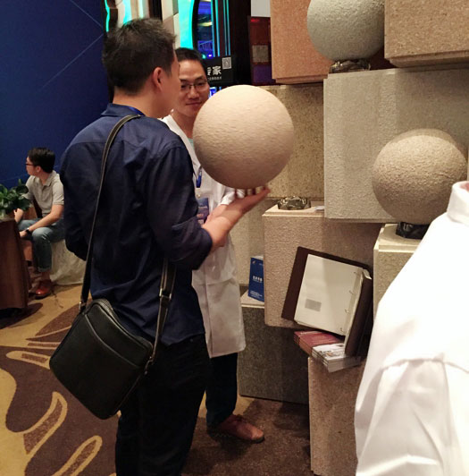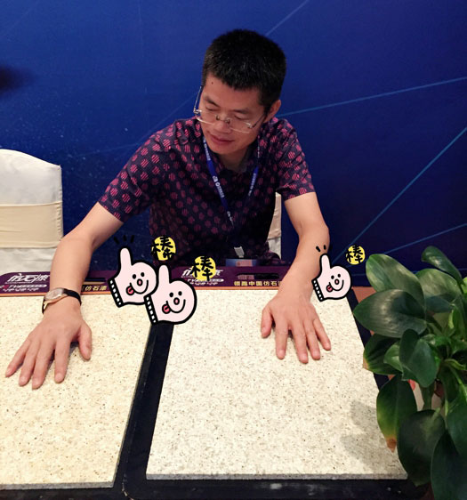 此次鑫浪展出的700水包砂樣板,以假亂真的仿石效果,讓酒店保安都誤以為我們工作人員搬運(yùn)的泡沫樣板是石頭,還主動詢問我們石頭太重,是否需要幫忙。這樣誤會的小插曲還很多,我們在感受此次與會人員的熱情的同時,鑫浪的仿石效果也得到了廣東涂協(xié)高層及參會單位的一致好評。