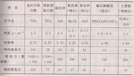 白色顏料都是無機(jī)顏料,通常,其折射率大于1.70才能稱為顏料。在涂料生產(chǎn)中,白色顏料使用最多,除用于生產(chǎn)白色涂料外,復(fù)色涂料亦通常采用部分白色顏料。白色顏料有金紅石型鈦白粉、銳鈦型鈦白粉、氧化鋅、立德粉和氧化銻等,他們的性能如下表。
