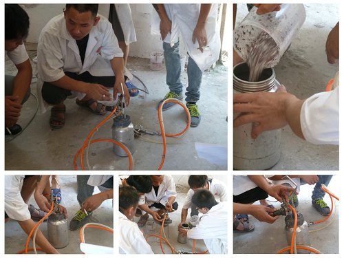 2014年6月18日,山西晉中芳芳涂料產(chǎn)業(yè)有限公司的李總、杜工來到鑫浪培訓基地,與我司技術員進行技術交流,主要涉及水包水、水包沙等新型涂料技術。我司學員培訓導師劉工親自陪同,并現(xiàn)場向客戶演示水包水、水包沙等技術方面的制作流程。