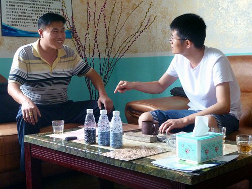 陳總正與林總交流水包水多彩技術(shù)