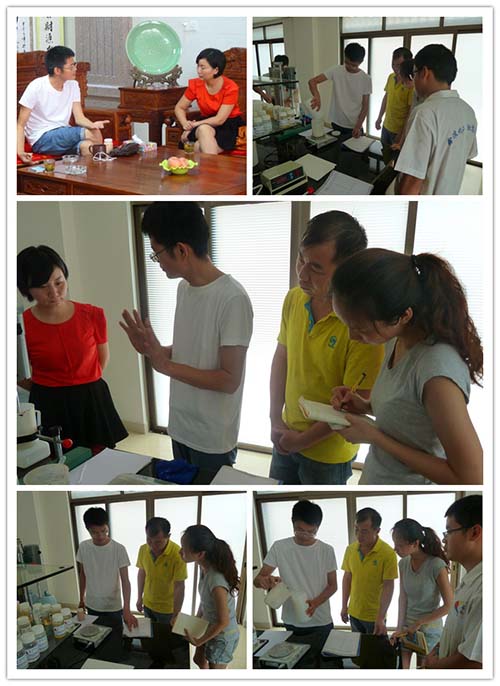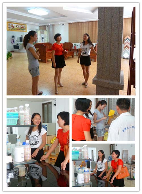 鑫浪化工董事長(zhǎng)陳董親自為美國(guó)豐雅國(guó)際化工集團(tuán)參觀團(tuán)演示了鑫浪獨(dú)家的水包水多彩的生產(chǎn)工藝。張董對(duì)其最低的成本、最簡(jiǎn)單的生產(chǎn)工藝及產(chǎn)品的超高的穩(wěn)定性稱(chēng)贊。