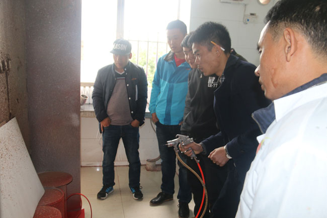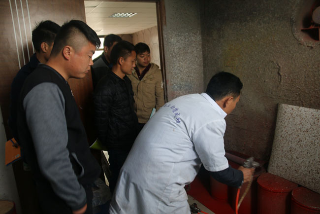 湖南任隆裝飾工程有限公司負(fù)責(zé)整個(gè)長(zhǎng)沙地區(qū)碧桂園等優(yōu)質(zhì)項(xiàng)目的外墻工程,水包水多彩的大時(shí)代的來(lái)臨,熟練掌握水包水噴槍技巧也是涂料工程師與施工人員必備的技能。湖南任隆裝飾謝總在應(yīng)用過(guò)700水包水體系后,獲得甲方的大力稱贊。謝總滿心歡喜,特在開(kāi)工前攜近十名優(yōu)秀項(xiàng)目經(jīng)理來(lái)鑫浪交流多彩施工技術(shù),以便完美呈現(xiàn)鑫浪700的精彩。