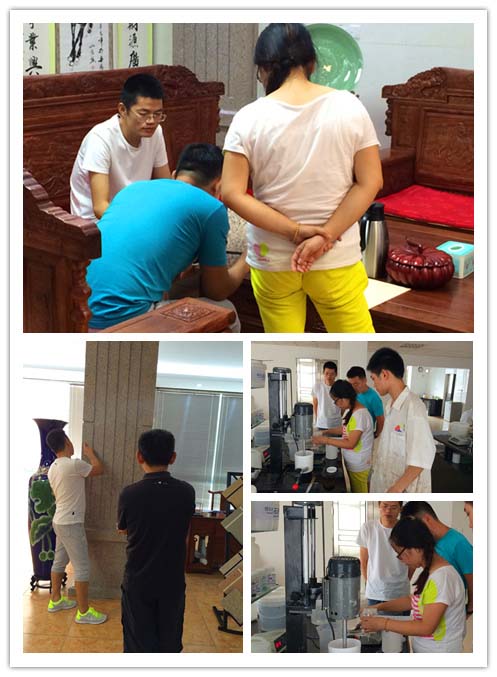 山西多福龍涂料有限公司王總、張工來鑫浪交流水包水多彩技術(shù)。王總親自測試鑫浪700水包水多彩體系后,對其穩(wěn)定性和很簡單的操作工藝表示認可,認為非常適合做工程,應(yīng)用性強。再加上業(yè)內(nèi)最低的成本,700水包水多彩成為客戶的首選。