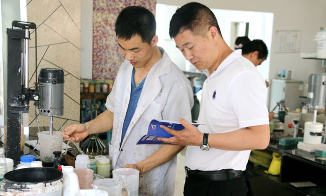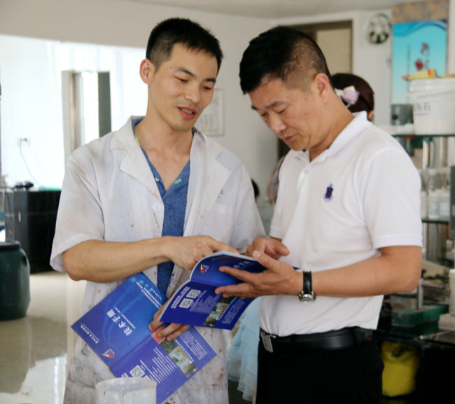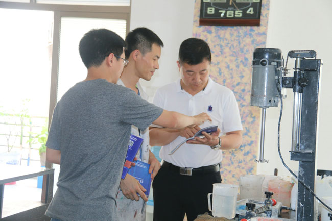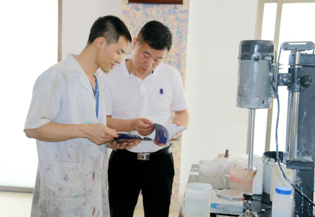 熱烈歡迎浙江華科張總來(lái)鑫浪考察、交流700水包水多彩體系技術(shù)與800水性裂紋漆體系技術(shù)。