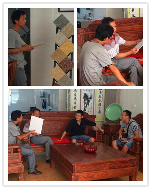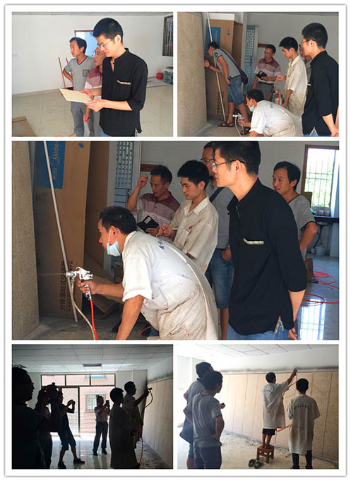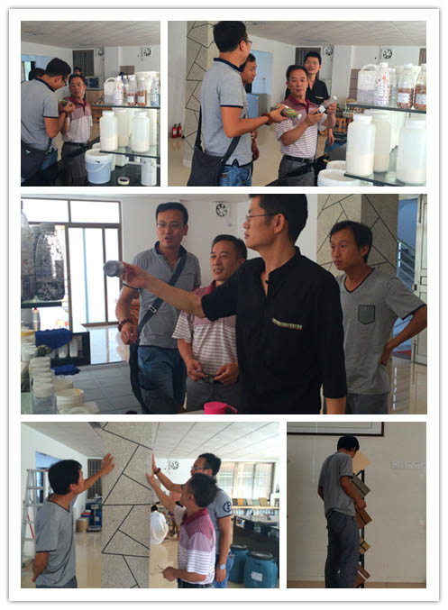 近日正當(dāng)鑫浪學(xué)院水包水實(shí)操課訓(xùn)練期,廣東楓源化工江廣杰經(jīng)理等一行人來(lái)鑫浪參觀交流水包水多彩技術(shù)。參觀期間,江經(jīng)理對(duì)鑫浪學(xué)員用700水包水多彩體系做成的液體花崗巖立柱稱賞不置。