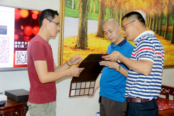 熱烈歡迎公司兄弟企業(yè)江蘇揚州匯帝涂料朱總攜浙江潮頭建材胡總、朗麗涂料丁總、明炬進出口公司夏總從廣州建材展專程來順德鑫浪與陳細艷交流700水包水多彩體系技術。各位老總對“鑫浪700”的體驗式銷售及仿石漆產(chǎn)品系統(tǒng)解決方案表示認可。陳總也熱忱歡迎喜愛涂料行業(yè)的人士來鑫浪作客,必將熱情款待。