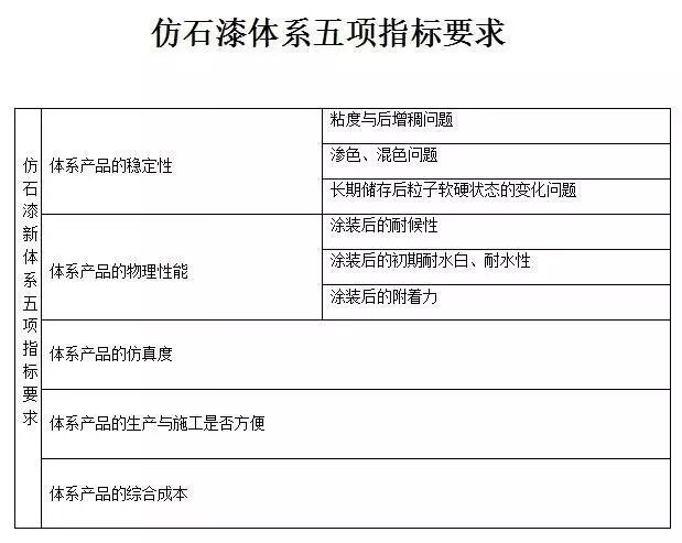 水包水仿石漆體系市場魚龍混雜,除了選擇信賴的合作商之外,還需滿足以下五項基本要求則為合格產(chǎn)品。