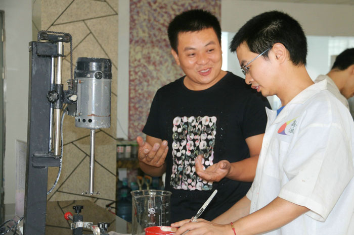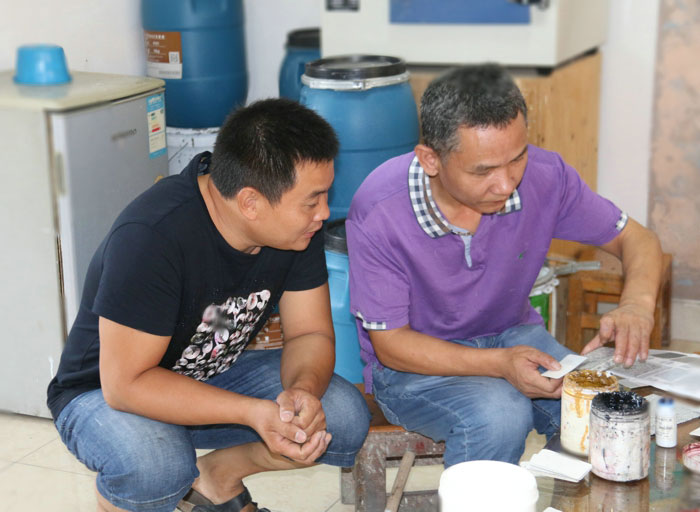 熱烈歡迎湖南婁底春景涂料劉總來鑫浪交流、體驗(yàn)700水包水多彩體系!劉總對700體系產(chǎn)品的儲(chǔ)存穩(wěn)定性、物理性能、仿真度、生產(chǎn)施工都非常滿意。水包水未來市場十分廣闊:只要抓住這場機(jī)遇,就可能成就品牌創(chuàng)造財(cái)富。鑫浪化工、助您成功