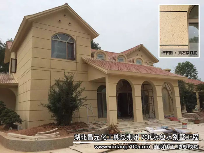 恭喜湖北昌元化工熊總!在荊州的700水包水外墻別墅工程順利竣工,此工程是用真石漆打底,賦予多彩質(zhì)感效果,呈現(xiàn)3D效果的700水包水之美~~