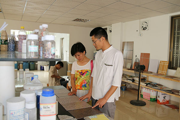 保儷萊涂料有限公司鐘總來鑫浪指導(dǎo)工作 稱贊鑫浪水包水產(chǎn)品仿板相似度極