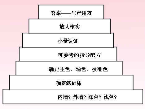 可籍參考配方——如果可以找到可籍參考的指導(dǎo)性配方,那就更好了,因?yàn)樯厦嬉呀?jīng)明確地告知你采用什么樣的基礎(chǔ)漆,主色、輔色和校準(zhǔn)色都已經(jīng)明白告知與你。直接可以進(jìn)入下一步,小量認(rèn)證。