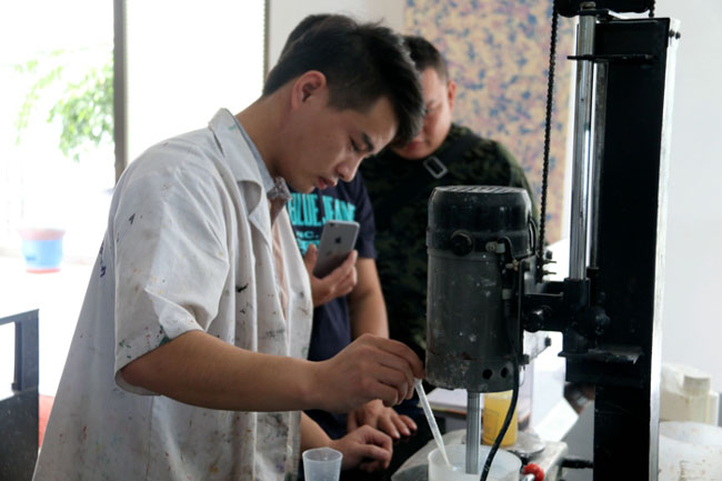 熱烈歡迎福州保得龍涂料潘總、肇慶陳總來鑫浪體驗(yàn)、交流700水包水多彩體系技術(shù)!