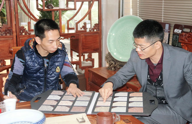 熱烈歡迎潮州華明涂料方總來鑫浪交流700水包砂、800水性裂紋漆技術(shù)。方總公司主營業(yè)務(wù)之一就是向歐美出口噴涂有裝飾涂料的盆栽陶土器具。方總此次慕名來鑫浪,是因700水包砂的勝原石的效果符合歐美人“生態(tài)自然美”的需要,以及水性無污染的環(huán)保要求從而得到方總的青睞。同樣水性環(huán)保、施工簡單、藝術(shù)效果美觀的800水性裂紋漆體系也受到方總的認(rèn)可,欲與鑫浪進行更深度的合作。